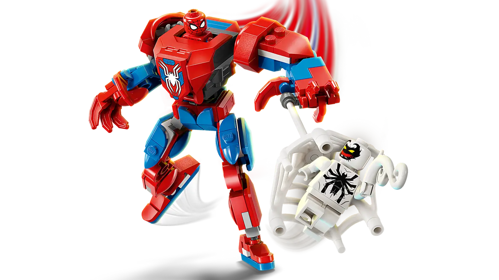 - LEGO® Marvel Spider-Man Mech vs. Anti-Venom – This buildable toy for kids features a large mech figure and 2 minifigures, providing endless Super Hero fun for boys and girls aged 6 and up