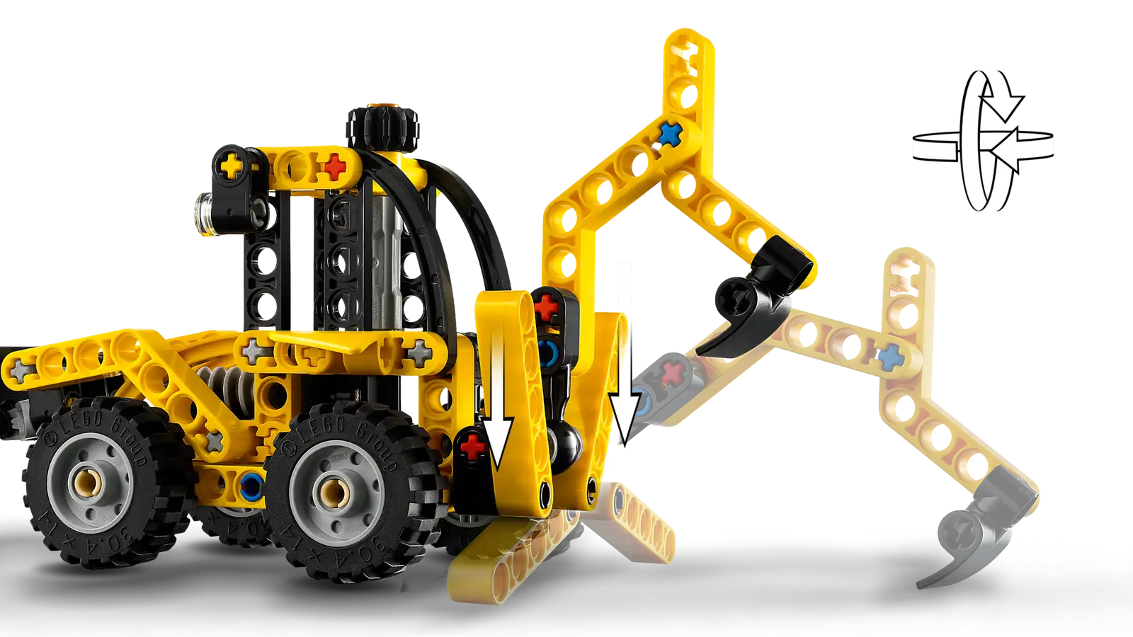 - Try out the scoop and digger – The LEGO® Technic™ Backhoe Loader model includes a scoop that kids can lift and lower using the knob, a back digger and outriggers